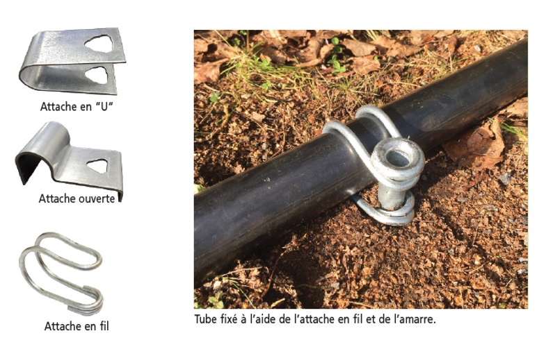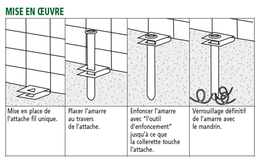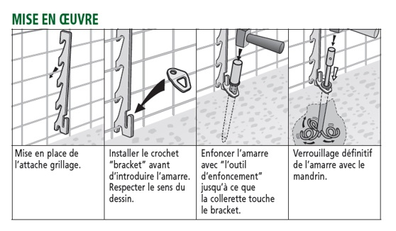 Dans ce cas les amarres sont associées à des pièces appelées « attaches grillages » afin de relier l’ancrage aux grillages.