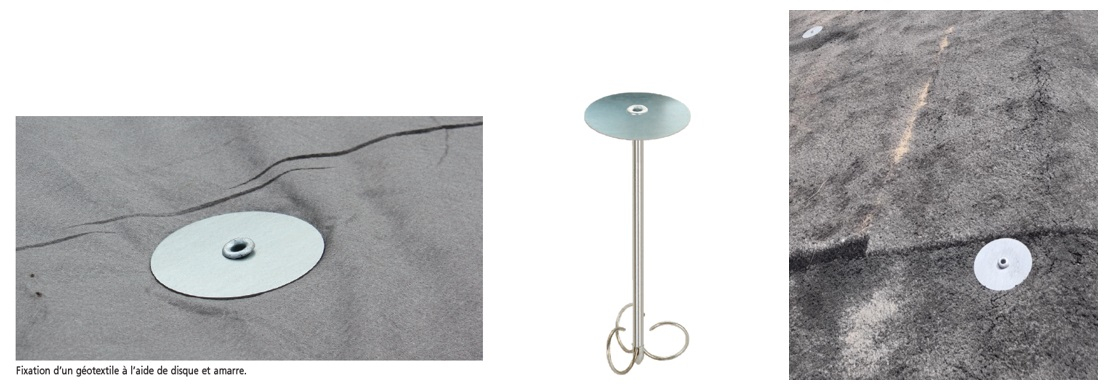 L’amarre Fenox, associée à une rondelle ou un disque de maintien permet de maintenir ou fixer ces toiles de paillage, géotextiles, films, bâches… au sol. La nature de la toile dépend du projet mais chacune a une résistance au déchirement. Il est donc nécessaire d’avoir une rondelle de répartition suffisamment large pour bien maintenir la toile.