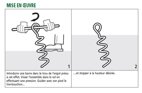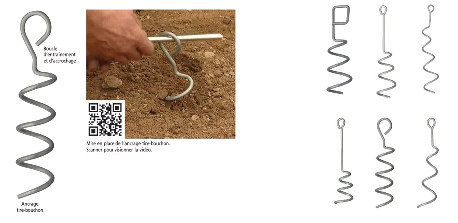 La mise en œuvre de ces ancrages en forme de tire-bouchon (ou queue de cochon) est très simple puisqu’il suffit de visser l’ancrage dans le sol :