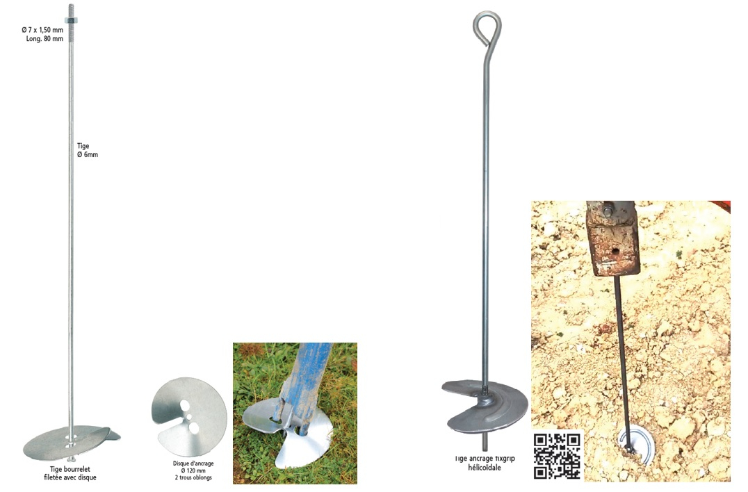 Un autre type d’ancrage bien connu et très utilisé existe pour les sols meubles (terre…) existe : le système « disque d’ancrage ».