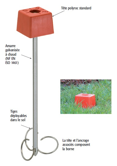 Exemple de fixation au sol par une amarre : la borne de géomètre
