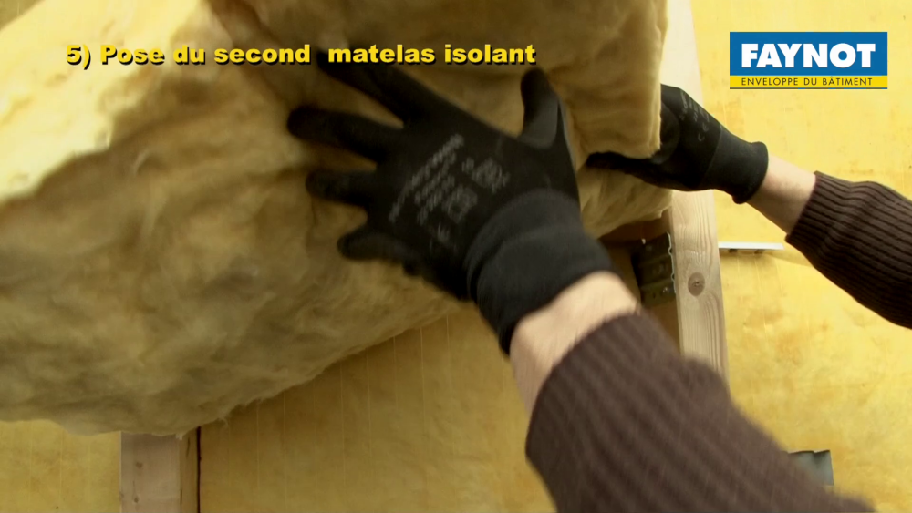 Elle est écartée vers l’extérieur afin de permettre le passage du matelas isolant, puis rabattue de manière à ce que les dents pénètrent dans l’isolant pour assurer son maintien.