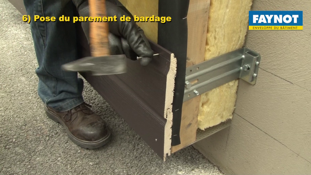 Pour se faire, une ossature secondaire est créée, composée généralement de chevrons bois fixés au mur à l’aide d’Equerres de bardage. L’espace vide permet la mise en place d’une ou plusieurs couches d’isolants thermiques. Reste pour finir l’habillage de la façade soit avec des clins bois, fibres-ciment ou parements composites fixés sur les chevrons.