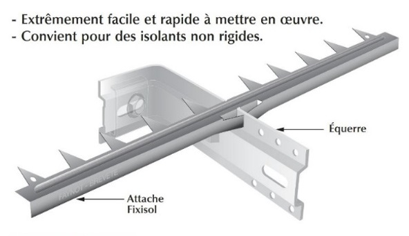 La large gamme d’équerre de fixation permet des épaisseurs d’isolation très importantes en un ou plusieurs matelas.