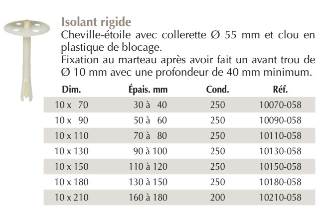 VOIR LES CHEVILLES POUR ISOLANT RIGIDE
