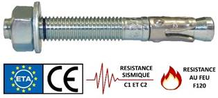 Cheville Goujon d'ancrage 8x95 zingué pour équerre standard et longue - béton fissuré